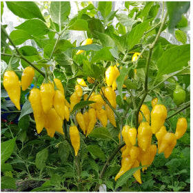 Very hot fruits on a compact plant make this well suited to a pot. Heat: 150,000 to 200,000 SHUs. Average contents 15 seeds.